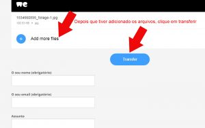 1. Clique em Add Your Files no campo azul + do wetransfer