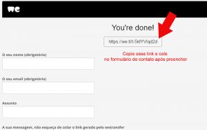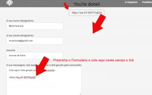 5. Preencha o Formulário e cole o link copiado no campo de mensagem